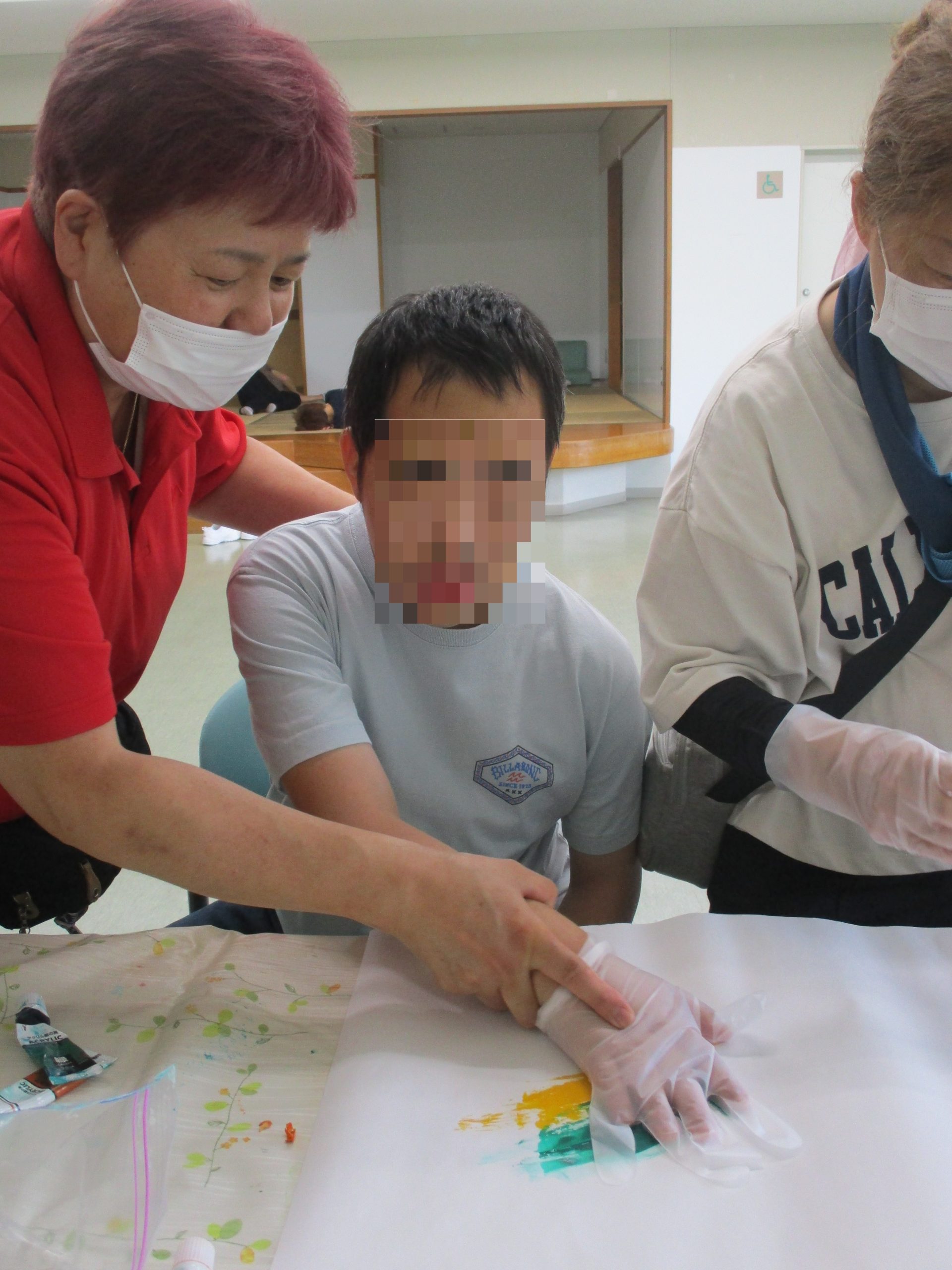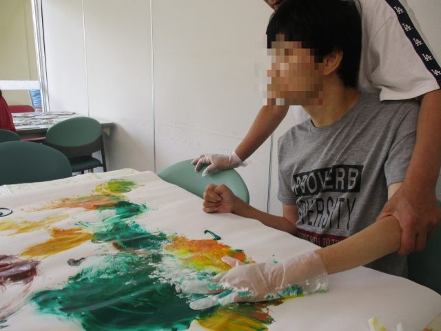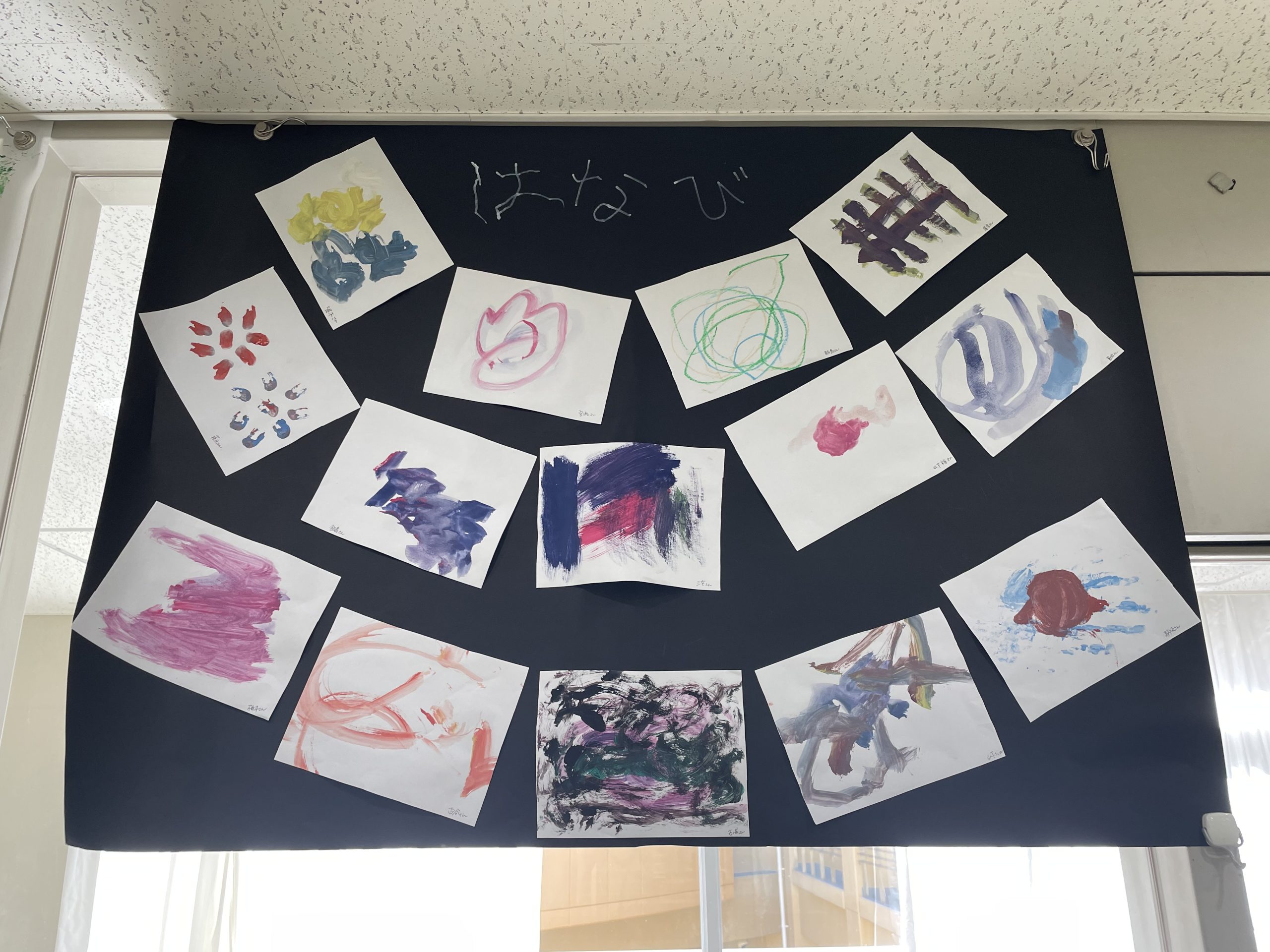 水に塗料を混ぜ、拡がる様子を観察したり…創作の時間はいろんな良い刺激がありますね!