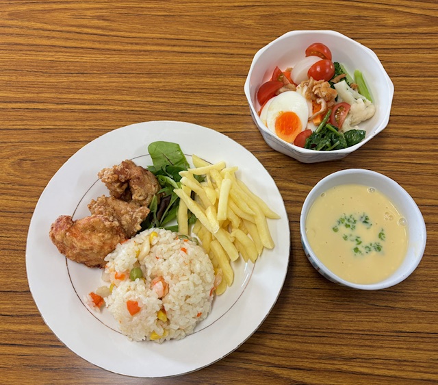 クリスマス料理をみんなで食べました。唐揚げのおかわりもありました。