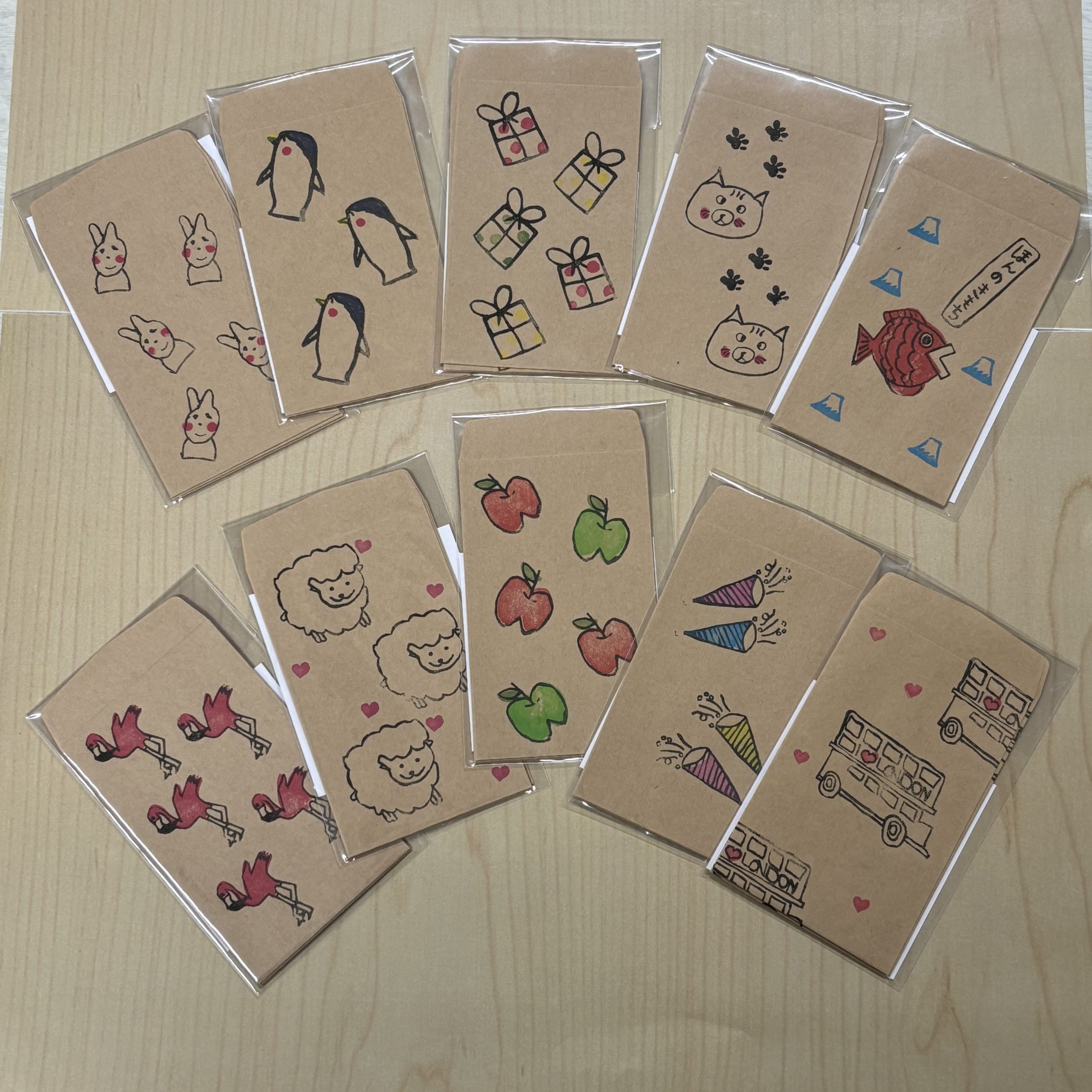 日々のちょっとしたやり取りには、利用者さんが描いた、ほっこり癒される消しゴムはんこのイラストが