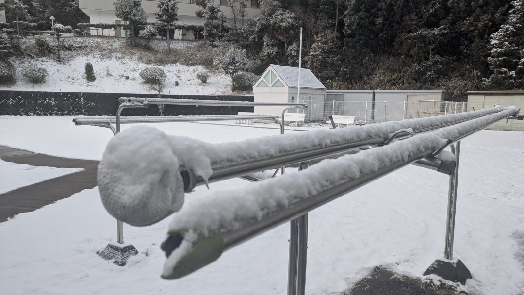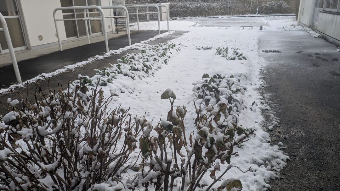 全国的に大雪で、ここヨゼフ寮にもかなり影響がありました。夜未明から降り始めた雪で朝には5㎝降り積もり、そのまま降り続いています。